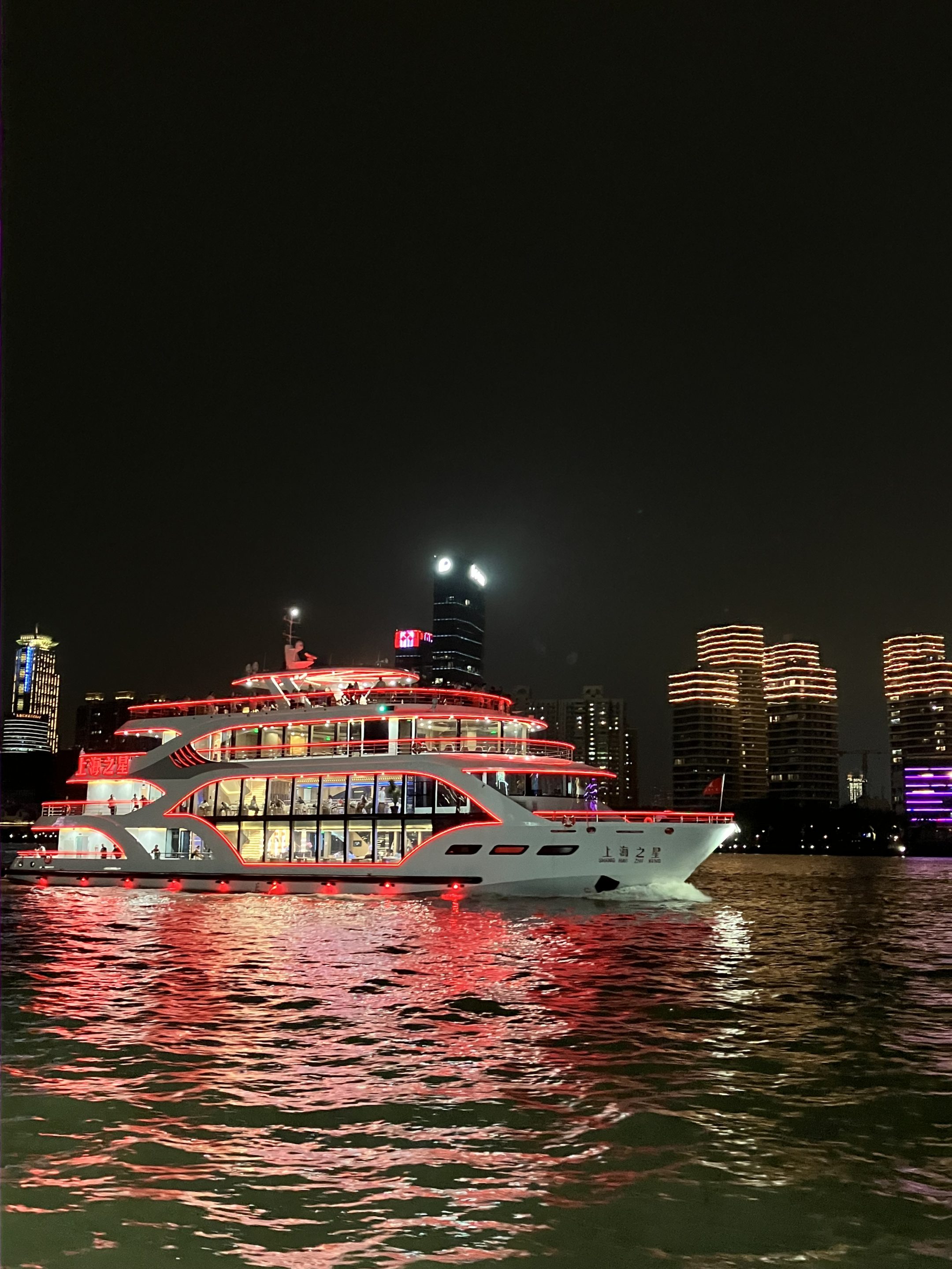 Le soir nous avons été dans un bateau sur le fleuve Hangpou au milieu de building éclairés a n’en plus pouvoir. C’est très beau la nuit, on se prend une claque, on peut voir les nuages de pollutions tellement il y de lumière. J’ai sympathisé avec des chinois très marrant qui essayaient de me parler en français .